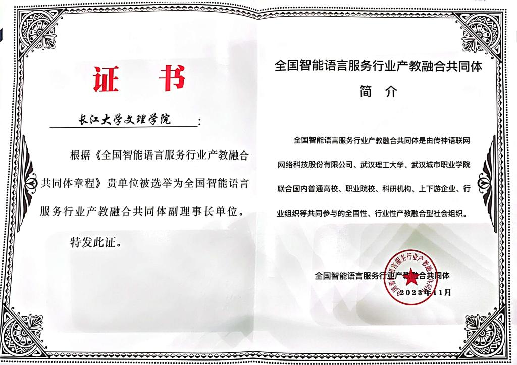本网讯(通讯员 董蓝旗)11月22日,全国智能语言服务行业产教融合共同体成立大会在武汉未来科技城举行,来自智能语言服务行业的企业、高校、科研机构等单位的两百余名代表出席了会议。外国语学院教师董蓝旗参加了本次会议,会上,公司当选全国智能语言服务行业产教融合共同体副理事长单位。