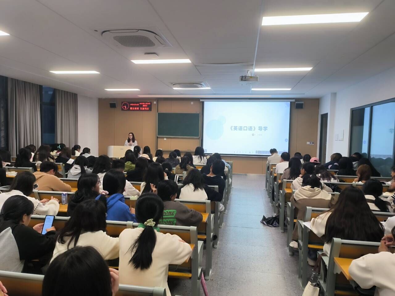 接着,高璇老师就《英语口语》课程的学习要点进行介绍。同学们需要从不同角度以不同句型练习日常对话。通过各种丰富实用的活动,建立课内外良好的英语语音环境。因此预习、扫码、跟读都必不可少。