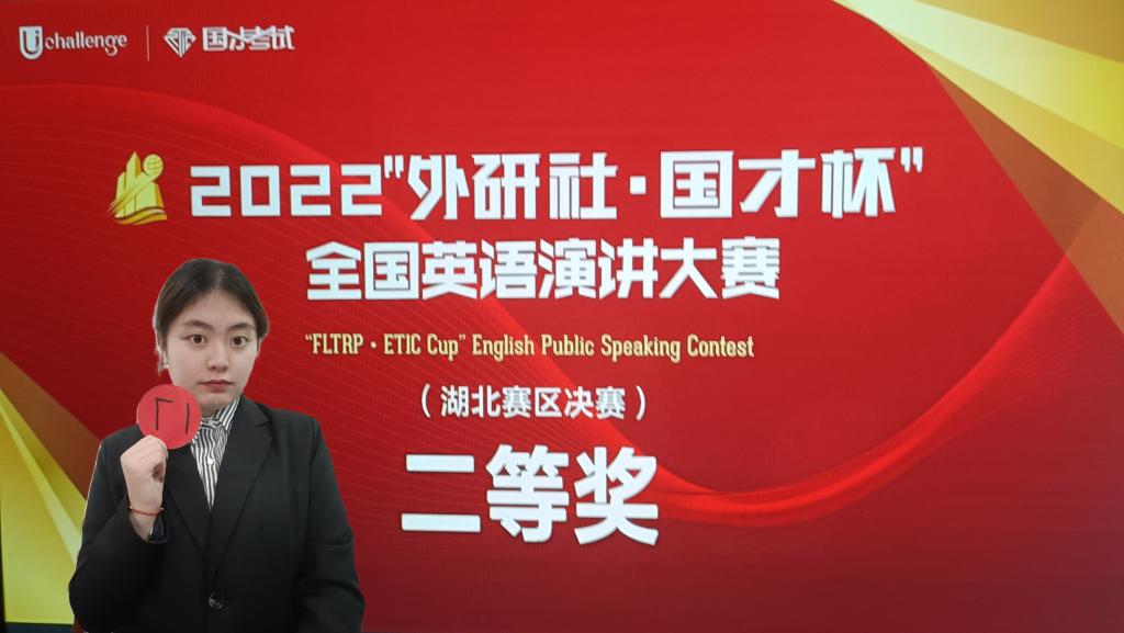 本网讯,10月29日,在2022“外研社·国才杯”全国英语演讲大赛湖北赛区决赛中,公司外国语学院员工英师5211班徐悦琳获二等奖。