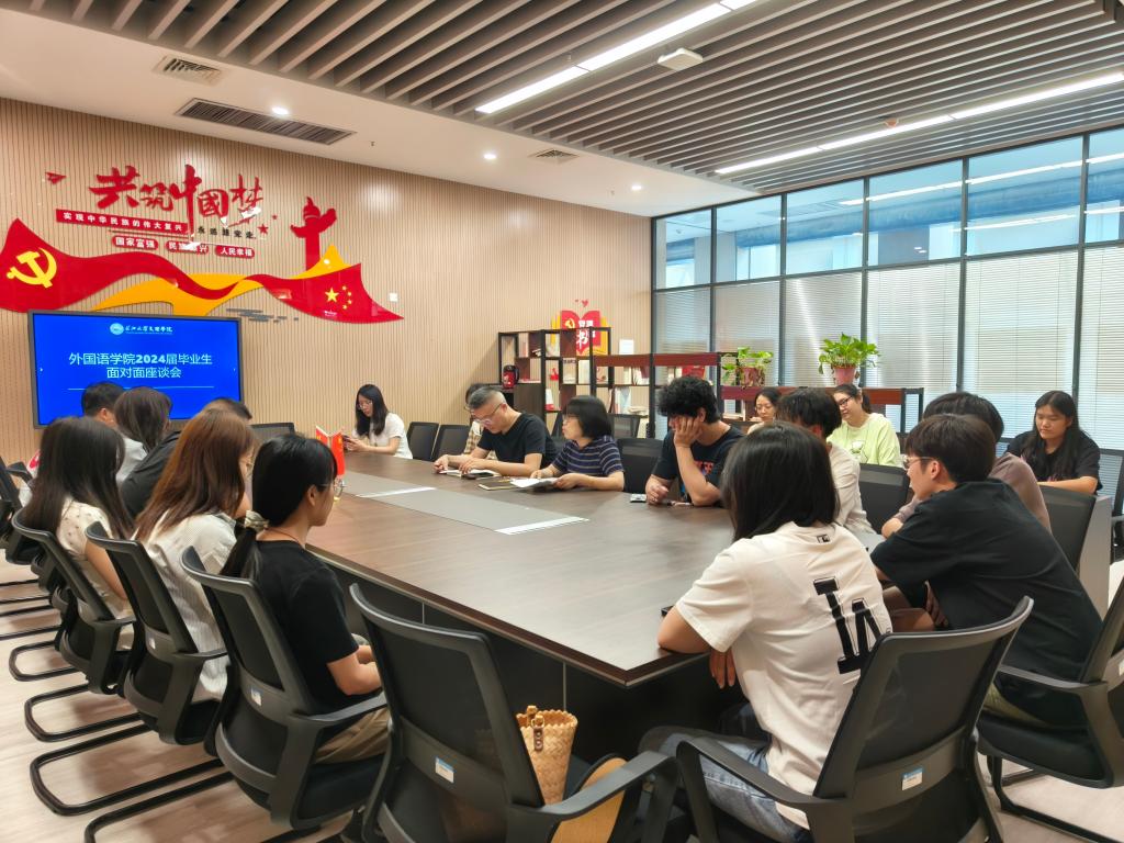 本网讯(通讯员 许静婷)5月22日下午,外国语学院于图书馆526召开2024届毕业生面对面座谈会。外国语公司党总支书记王玲玲、副书记刘鋆锋、毕业班辅导员及部分毕业生代表参加本次活动。座谈会外国语学院常务副经理韩翠萍主持。