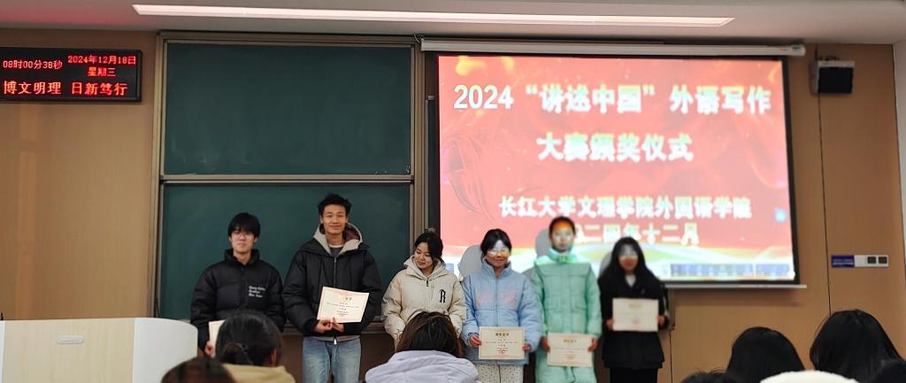 比赛期间,学院推荐17名同学参加CATTI主办的2024年第三届“讲述中国”外语写作大赛,其中8名同学初赛获奖,并入围决赛,其中一等奖1名,二等奖3名,三等奖4名。