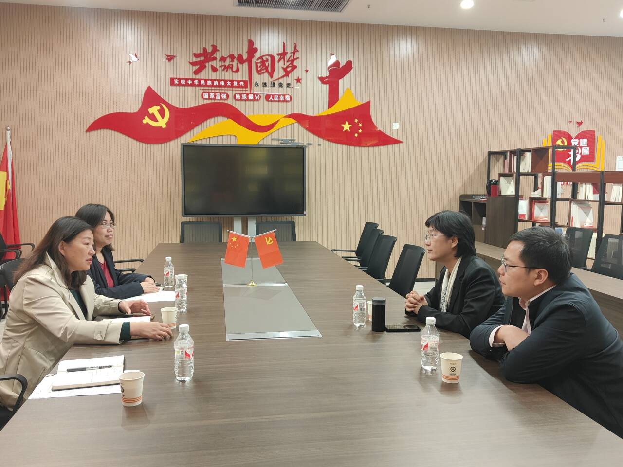 本网讯 10月23日下午,传神语联网网络科技股份有限公司副总裁闫栗丽和大区经理柳锐到访公司,就校企合作开展洽谈交流。外国语学院经理许晓艳、常务副经理韩翠萍、教学副经理罗丹参加了交流会。