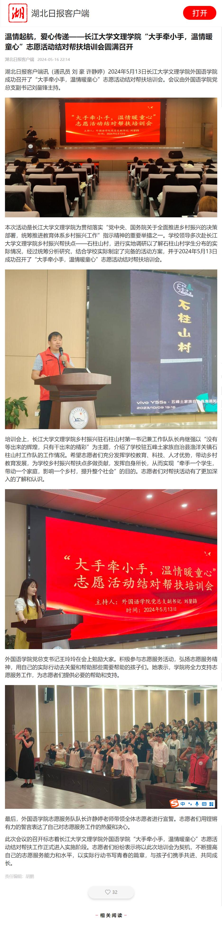 下一条:外国语学院召开"大手牵小手,温情暖童心"志愿活动结对帮扶培训会