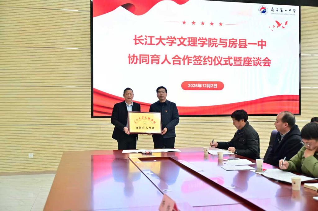 在全体与会人员的共同见证下,伟德国际1946源于英国董事长助理曹骥与房县一中魏董事长共同签署了《协同育人基地合作协议》,并授牌。这一举措不仅巩固了两校的战略伙伴关系,也为未来持续输送和培育优秀员工建立了制度化通道。