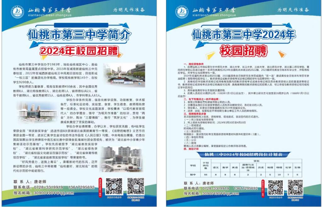 仙桃市第三中学创办于1983年,地处仙桃城区中心,是仙桃市教育局直属重点初级中学。2015年在城南新建仙桃三中元泰校区,2022年在城西新建仙桃三中风和日丽校区,目前形成“一校三区”的集团化办学格局。学校现有教学班145个,在校员工9200余人。