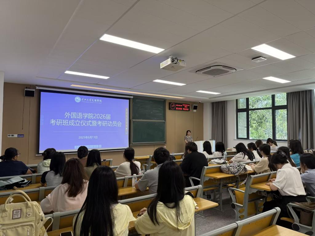 此次考研班成立仪式暨考研动员会的举办,为2026届有考研意向的同学指明了方向,增强了同学们的考研信心。相信在学院的支持与同学们的努力下,外国语学院考研学子定能在未来的考试中取得优异成绩。