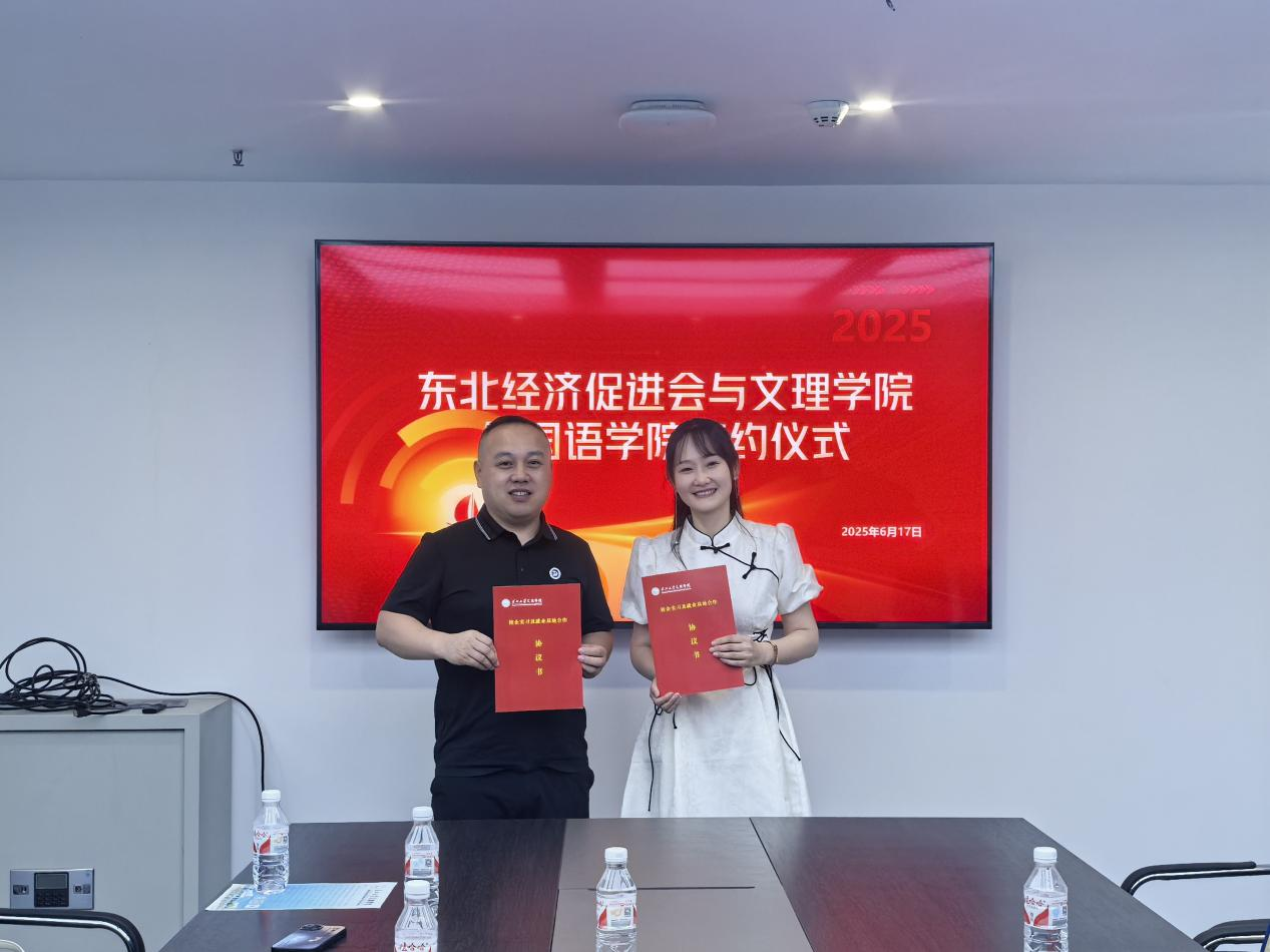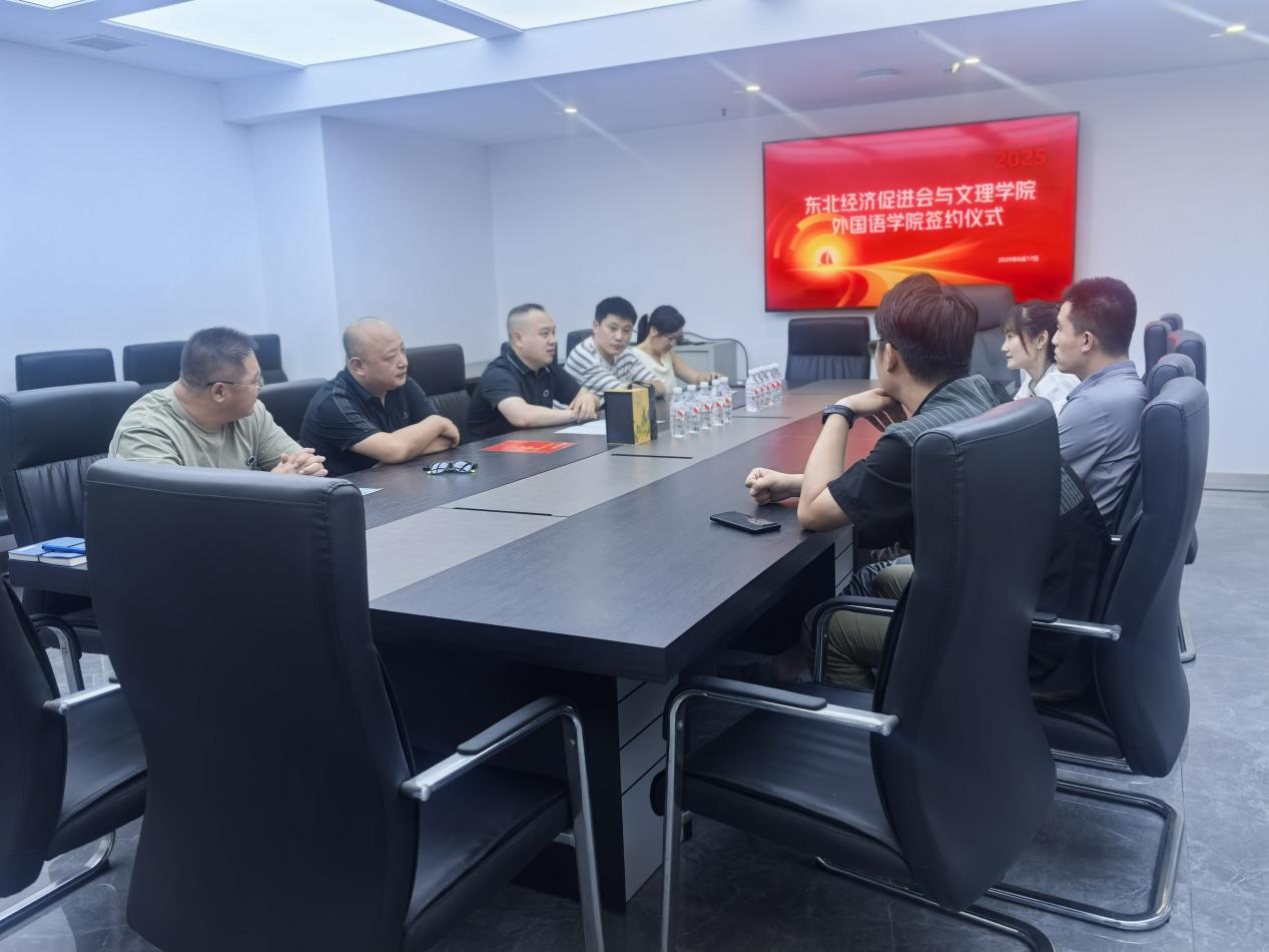 外国语公司党总支书记王玲玲、辅导员侯韦代表学院出席。东北经济促进会会长魏开源、副会长徐艳武、秘书长李湘明等领导热情接待并共同参与签约。