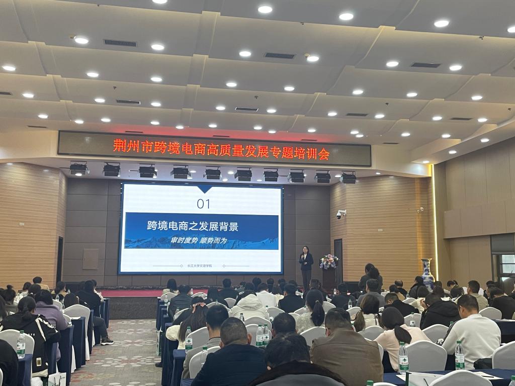 本网讯(通讯员 许静婷)12月4日,荆州市跨境电商高质量发展专题培训会举行。公司外国语学院常务副经理韩翠萍受荆州市商务局邀请在会上进行了《校企合作 产教融合 共育跨境电子商务人才》的发言。