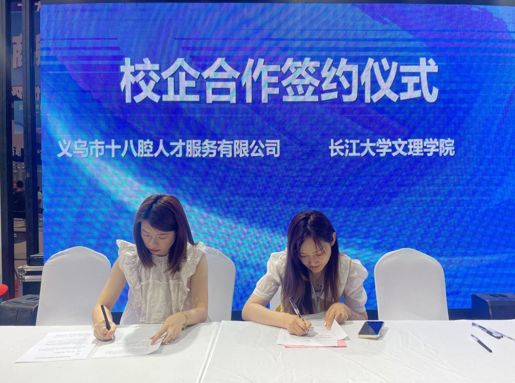 活动共有全国大中城市巡回招聘高校毕业生义务站(电商专场)、电子商务人才创业创新大赛、跨境电商人才发展论坛、“百校千企”校企对接等八大主题活动。活动现场公司教师代表与当地人社局、参会企业进行了校企合作交流洽谈,介绍公司专业设置、人才培养、实习就业等情况,了解义乌当地就业人才政策、企业人才需求。分别与义乌市人力资源和社会保障局、义乌温投进出口有限公司、义乌十八腔人才服务有限公司签订了人才合作协议。