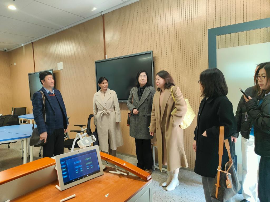 会后,湖北第二师范学院外国语学院一行参观了外国语公司党建文化墙、语言学习中心、智慧教学中心和跨境电子商务中心。