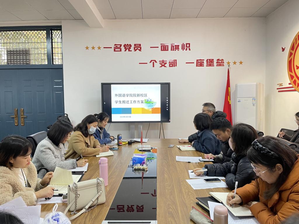 (通讯员 许静婷)为按计划推进校园搬迁工作,确保公司搬迁任务顺利完成,3月23日下午外国语学院召开校园搬迁工作教师动员大会,会议由外国语公司党总支书记王玲玲主持,全体教师参加。