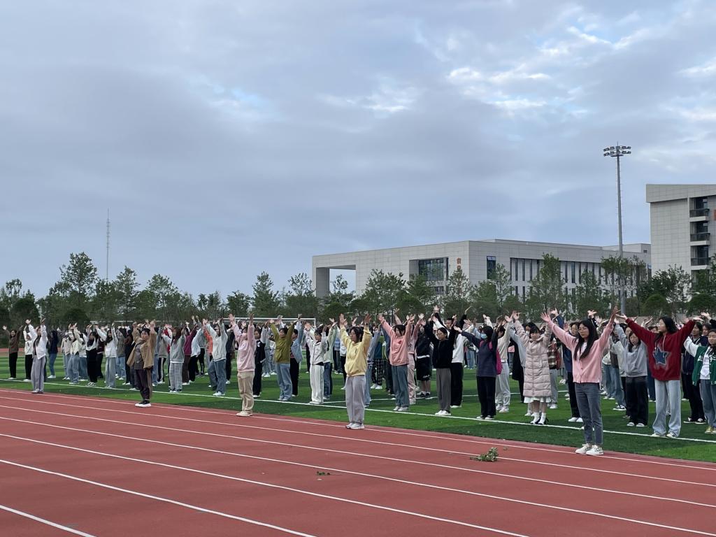 升旗仪式开始前,外国语学院全体师生一同跳起强身体操,明快的节拍伴着矫健的舞步,充分展现了朝气蓬勃的精神风貌。