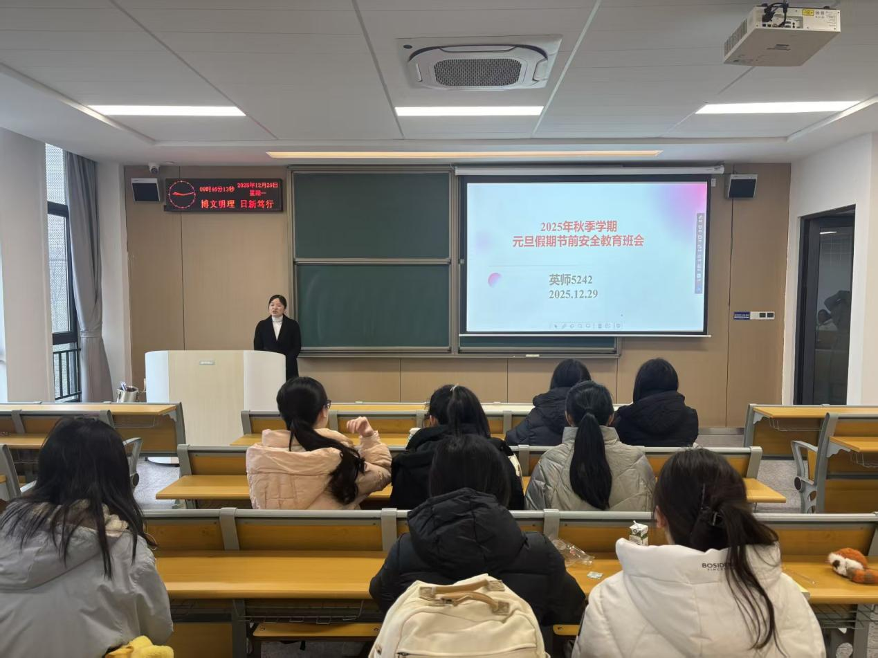 本网讯(通讯员 刘美慧)为增强员工安全意识,筑牢假期安全防线,确保元旦期间校园稳定与员工平安,12月29日,外国语学院组织各班级统一召开元旦假期节前安全教育主题班会。
