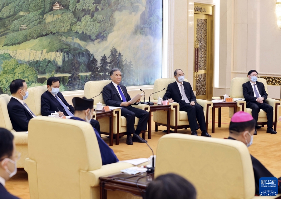 汪洋充分肯定各宗教团体2021年所做工作,对2022年工作提出殷切希望。他强调,宗教团体要加强自我教育,持续开展培育和践行社会主义核心价值观、爱党爱国爱社会主义主题教育等活动,引导宗教界人士和信教群众不断增进“五个认同”,夯实共同团结奋斗的思想政治基础。要落实全面从严治教要求,以刀刃向内的勇气解决影响宗教健康传承的突出问题,建立健全内部管理制度机制,形成奉法重法、持戒守规、风清气正的良好氛围,维护宗教领域和谐稳定。要以日日做功的毅力和久久为功的定力,深入推进我国宗教中国化,使我国宗教更好同社会主义社会相适应,同中国特色社会主义新时代相适应。要办好宗教院校,既培养一支规模适当、符合要求、梯次合理的基层教职人员队伍,也培养一批精通经典教义、中华优秀传统文化的高层次宗教人才。要严格落实疫情防控规定,引导信教群众合理安排宗教活动,适当减少流动聚集,过一个安定祥和的春节。