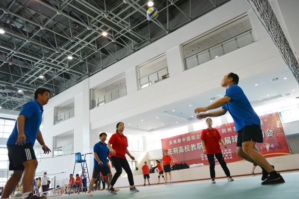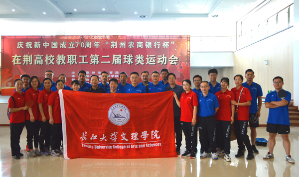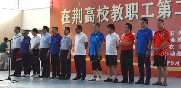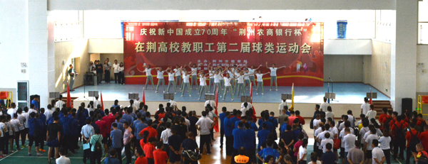 本网讯(记者 吴秀丽)今天(9月29日),2019年“庆祝新中国成立70周年”在荆高校教职工第二届球类运动会在荆州职业技术学院举行。学院领导朱继平、尹家经、康建虎、孙细望、曹骥、郭明虎和21名教职工组成代表队,代表公司参加运动会,庆祝新中国成立70周年。