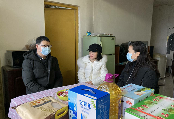 本网讯春节将至,学院工会认真开展调查摸底工作,了解掌握因疫情未返乡回家过年教职工的基本情况。经了解,来自河北邯郸的设计系教师冯亚丽,今年积极响应当地政府号召,就地过年,目前租住在西校区。2月7日上午,党委副书记孙细望、工会主席王玲玲、设计系党总支书记许梦怡一行来到冯亚丽家,送去新春慰问品和温馨的祝福。冯亚丽表示,非常感谢学院的亲切关怀,虽然自己没有回老家,但感受到了伟德国际1946源于英国大家庭的温暖,也祝愿学院未来发展越来越好。