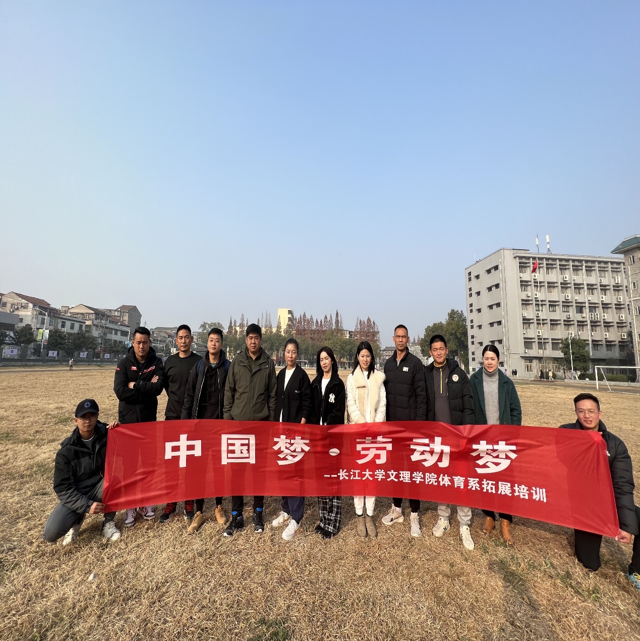 本网讯(通讯员 徐勇)12月9号下午,体育系全体教职工举行了一场“中国梦.劳动梦”为主题的拓展培训,本次活动是体育系成立以来进行的第一次团建活动。活动中,老师们相互配合,分工合作,不仅锻炼了身体,还增进了交流,加深了了解,提升了凝聚力。
