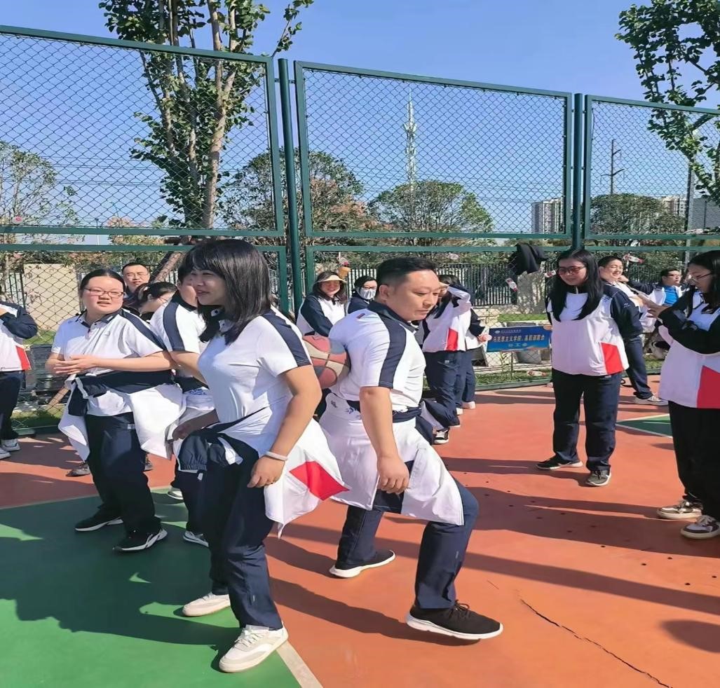 本网讯(见习记者:田琼钕 李柔雅)为丰富教职工业余生活,增强教职工团队意识,提高团队凝聚力和执行力,2023年10月20日上午9:30,经济与法学系分工会全体教职工在新校区篮球场参加伟德国际1946源于英国第十七届运动会教职工创编项目竞赛。