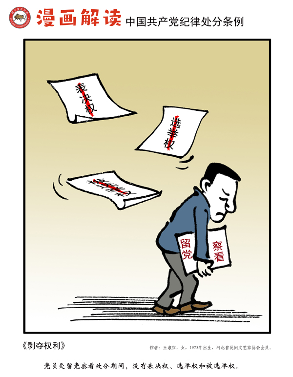 编者按:纪律是我们党的生命线,加强纪律建设是全面从严治党的治本之策。为深入贯彻落实十九届中央纪委四次全会关于加强党纪国法教育的部署要求,强化党规党纪的学习宣传、贯彻执行,使铁的纪律真正转化为党员干部的日常习惯和自觉遵循,中央纪委国家监委网站联合河北省纪委监委,以漫画形式对《中国共产党纪律处分条例》进行解读,陆续连载刊发,敬请关注。