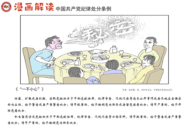 编者按:纪律是我们党的生命线,加强纪律建设是全面从严治党的治本之策。为深入贯彻落实十九届中央纪委四次全会关于加强党纪国法教育的部署要求,强化党规党纪的学习宣传、贯彻执行,使铁的纪律真正转化为党员干部的日常习惯和自觉遵循,中央纪委国家监委网站联合河北省纪委监委,以漫画形式对《中国共产党纪律处分条例》进行解读,陆续连载刊发,敬请关注。