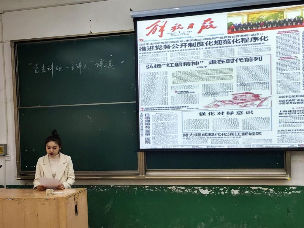 参加比赛的选手风格迥异,他们或慷慨激昂,或声情并茂,不拘一格,各具风采。选手们充分准备,演讲时结合PPT,将自己要表达的情感传达给每一位评委。魏文静选手从奶奶在她小时候讲述的故事入手,以小极大,抒发对党史的感悟;杨岚清选手标准的声线搭配着演讲背景声音牵动着在场每一位的心……