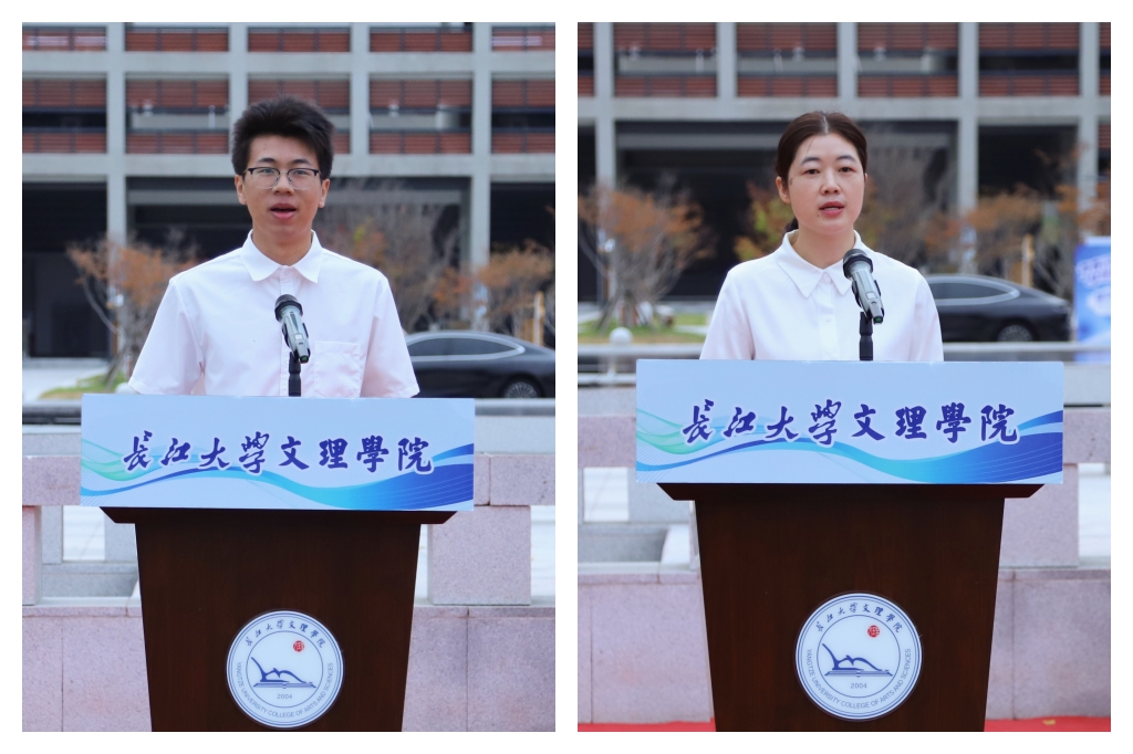 旭日初升,校国旗护卫队队员踏着坚定的步伐,护送国旗入场。国歌奏响,全体肃立,行注目礼,五星红旗冉冉升起。教育与心理学院小教5242班罗飞扬同学作为在校员工代表发言,分享他对大学真谛的理解,并呼吁同学们保持求知热忱,肩负起时代责任。马克思主义学院教师史苗苗以《立德修身担使命 勤学笃行启新程》为题,倡议全校青年老员工以德立身、心怀家国,勤学创新、知行合一,拥抱时代、勇担使命。