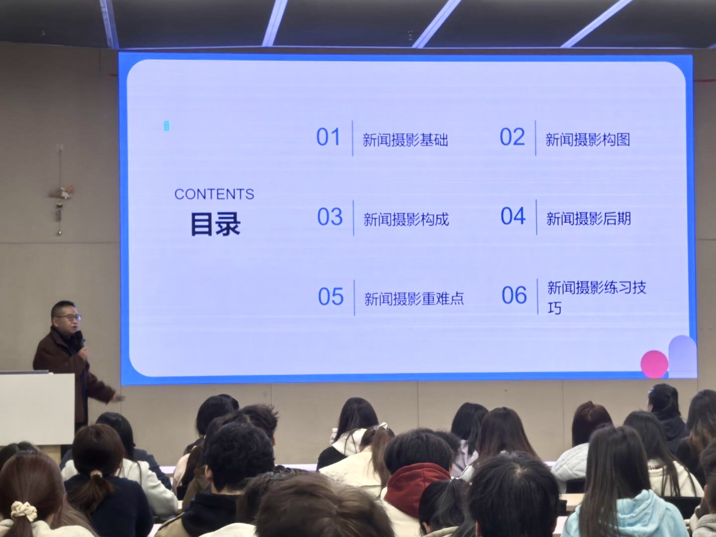 讲座特邀人文与传媒学院王磊老师担任主讲嘉宾,为大家带来一场关于摄影心得与实战技巧的精彩分享。王老师从新闻摄影的定义、特征入手,深入剖析其方法与技巧,并通过丰富的案例分析,帮助学员深刻理解新闻摄影的核心要素。他强调,新闻采集和拍照能力的提升,关键在于多学、多看、多拍、多练,唯有在点滴积累中不断实践,方能实现质的飞跃。