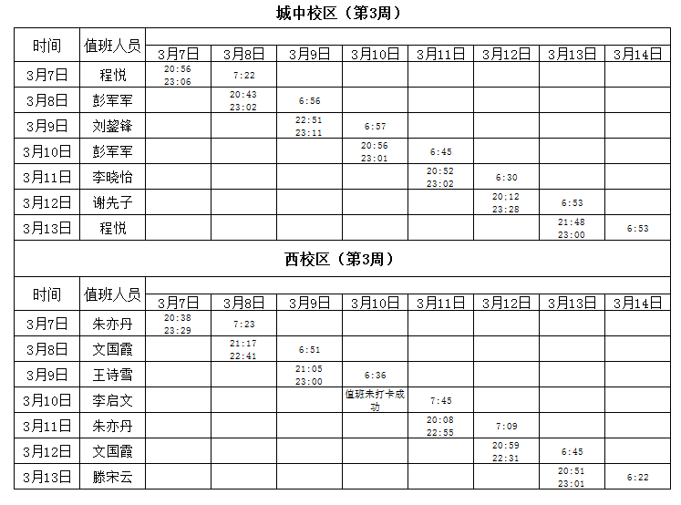 2021-2022学年第2学期第3周学工人员寝室值班通报