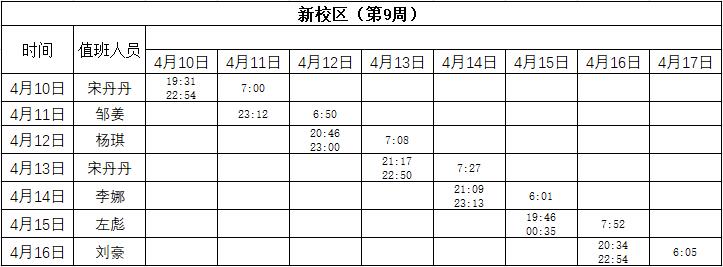 2022-2023学年第二学期第9周学工人员寝室值班通报