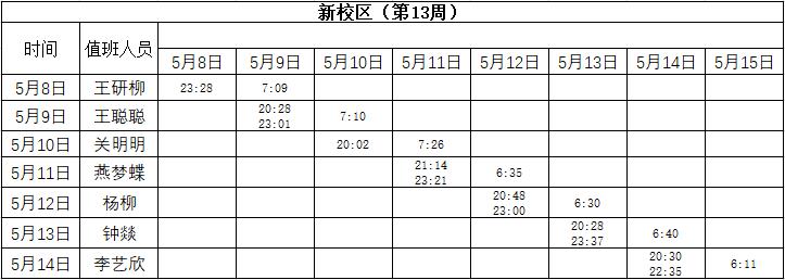 2022-2023学年第二学期第13-14周学工人员寝室值班通报