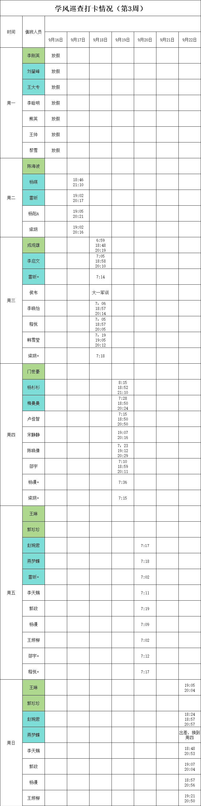 2024-2025学年第一学期第2-3周学风巡查打卡情况公示