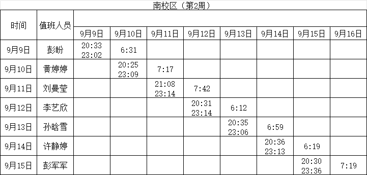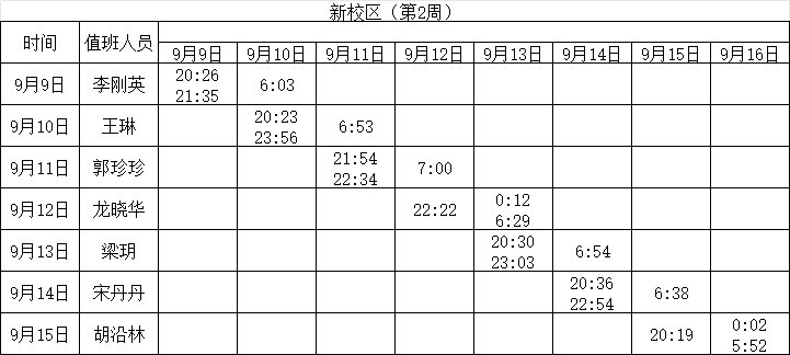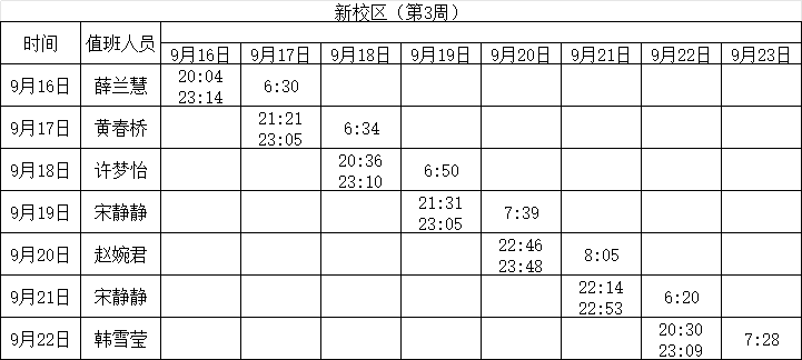 2024-2025学年第一学期第1-3周学工人员寝室值班通报
