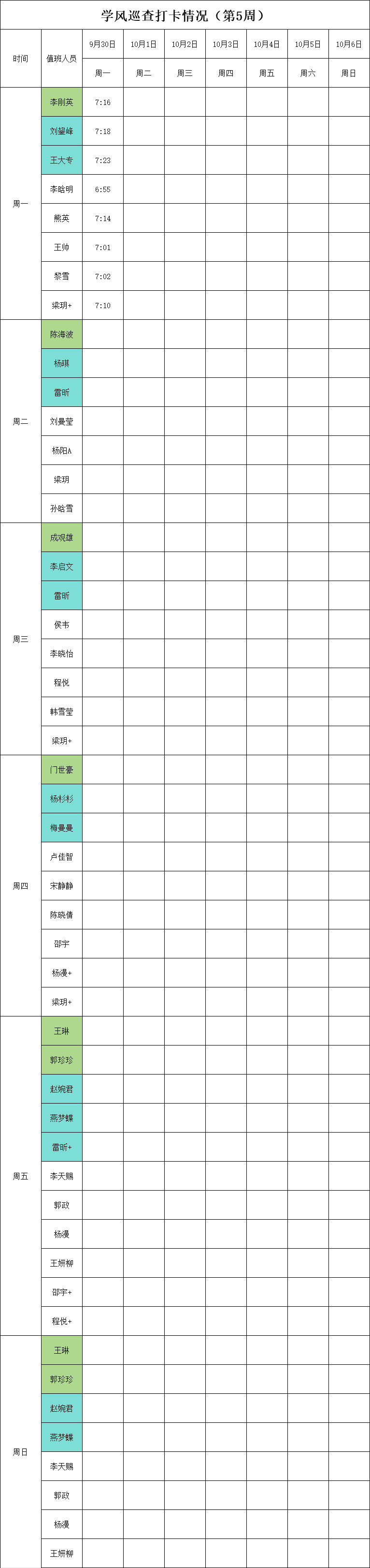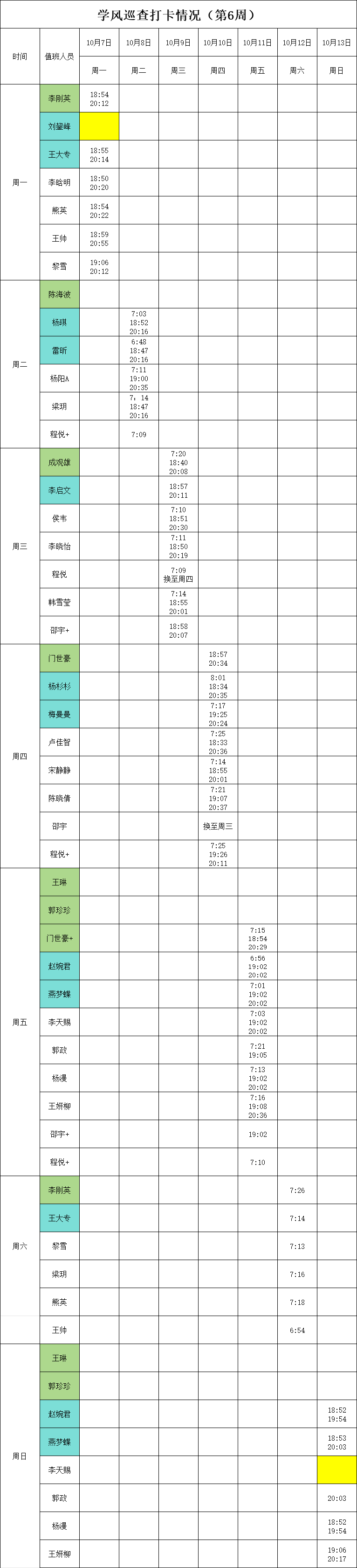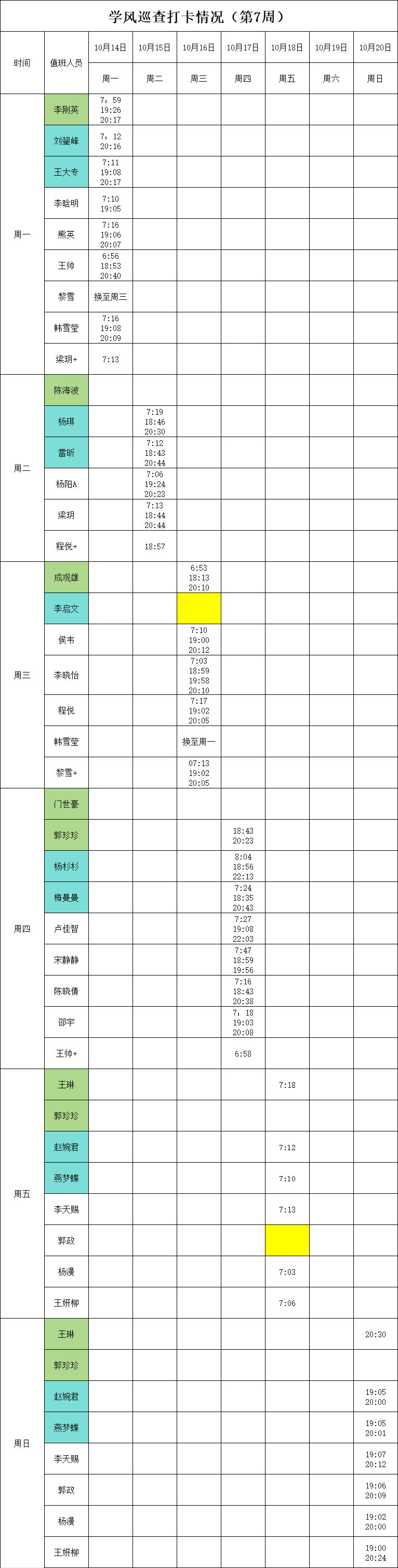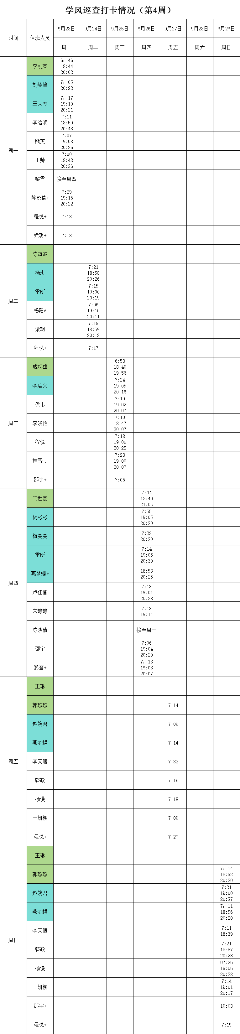 2024-2025学年第一学期第4-7周学风巡查打卡情况公示