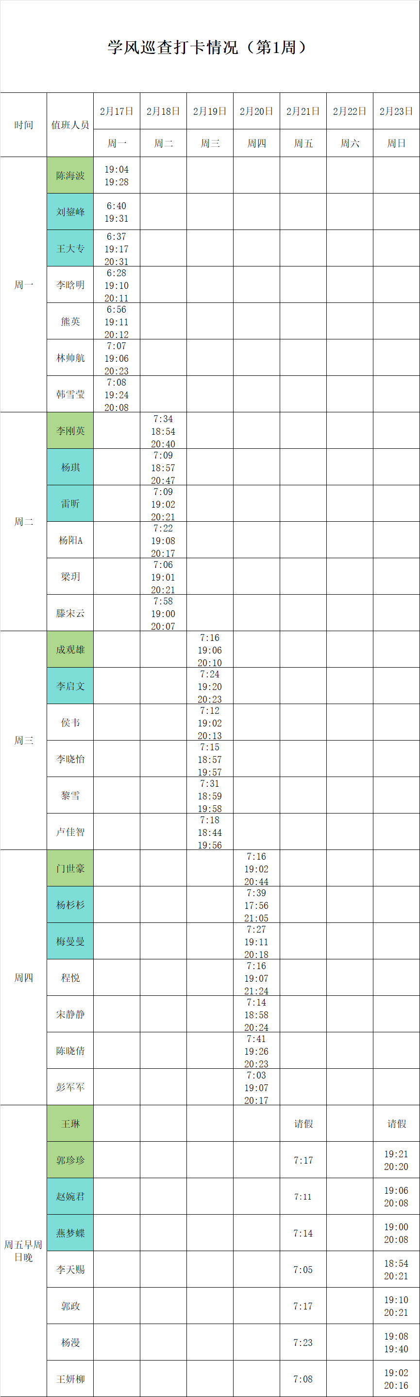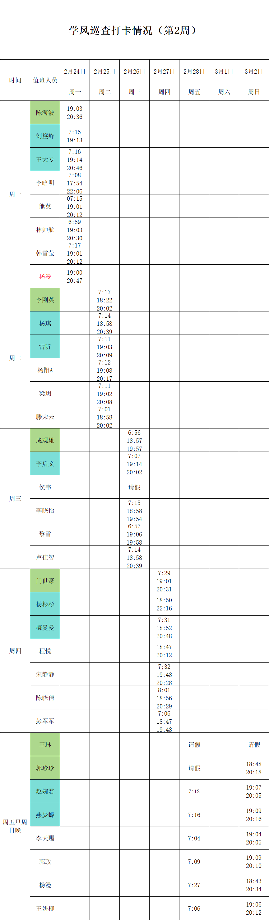 2024-2025学年第二学期第1-2周学风巡查打卡情况公示