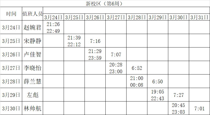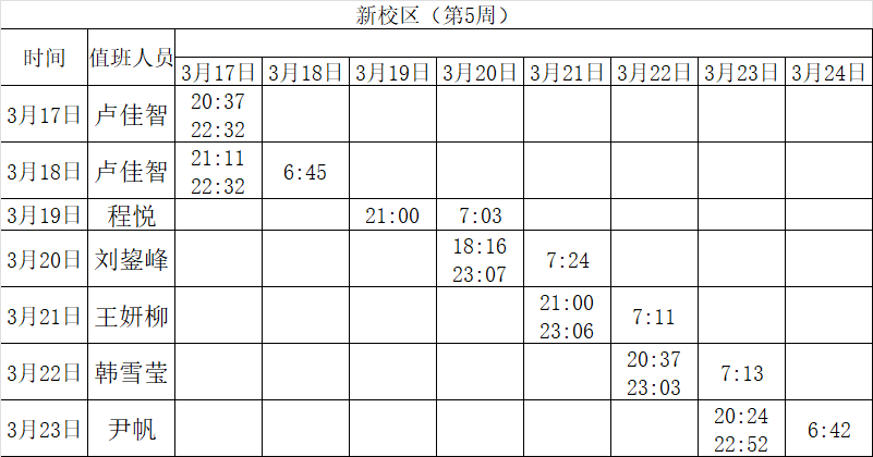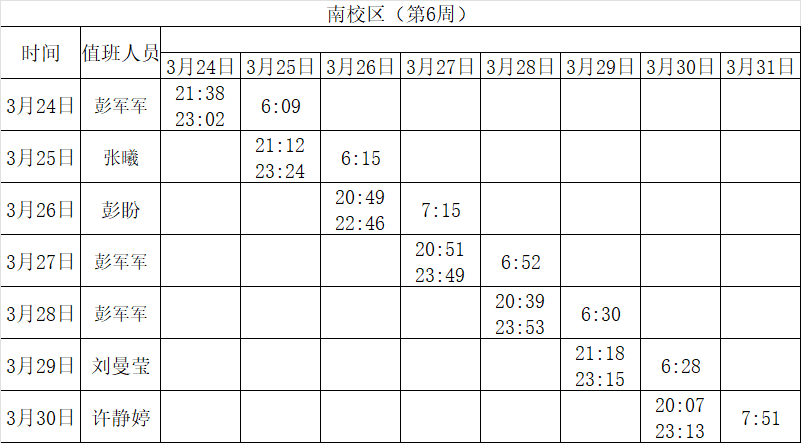 2024-2025学年第二学期第5-6周学工人员寝室值班通报