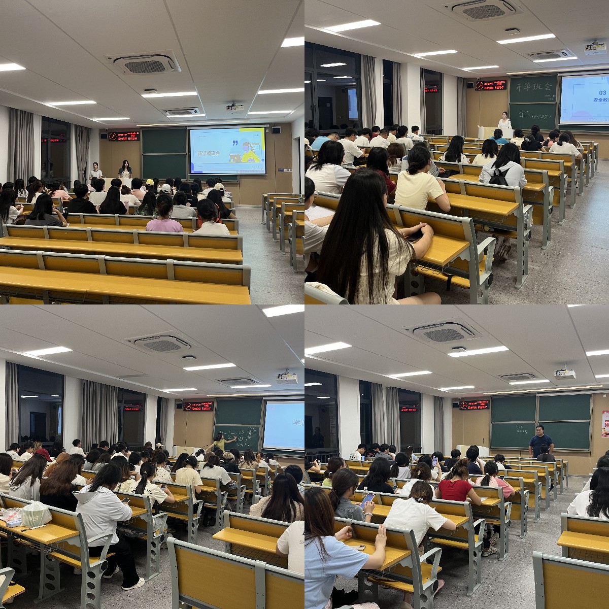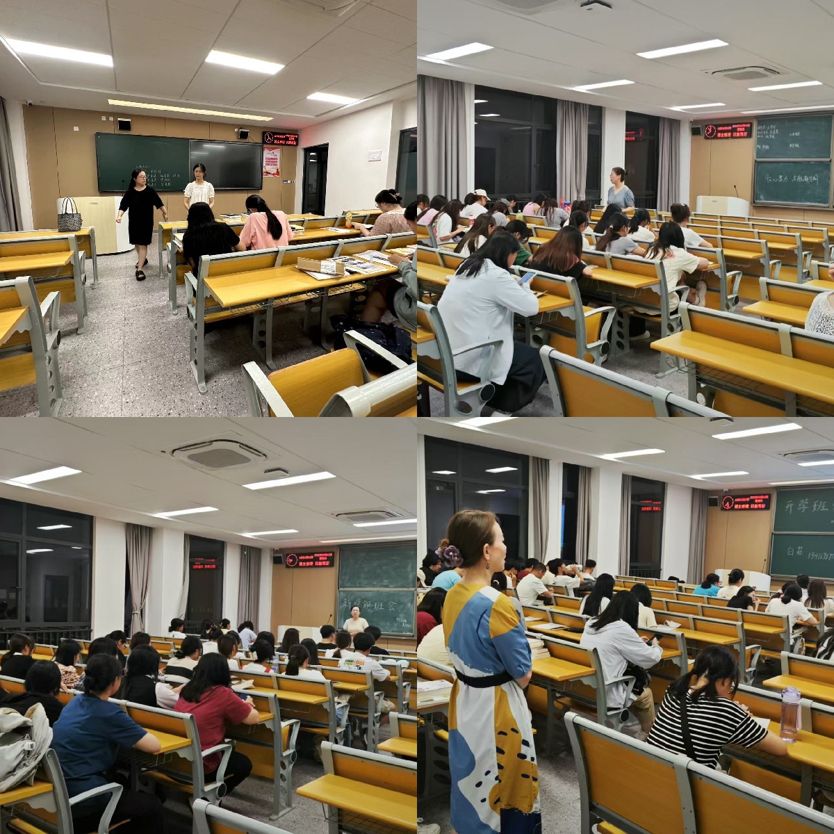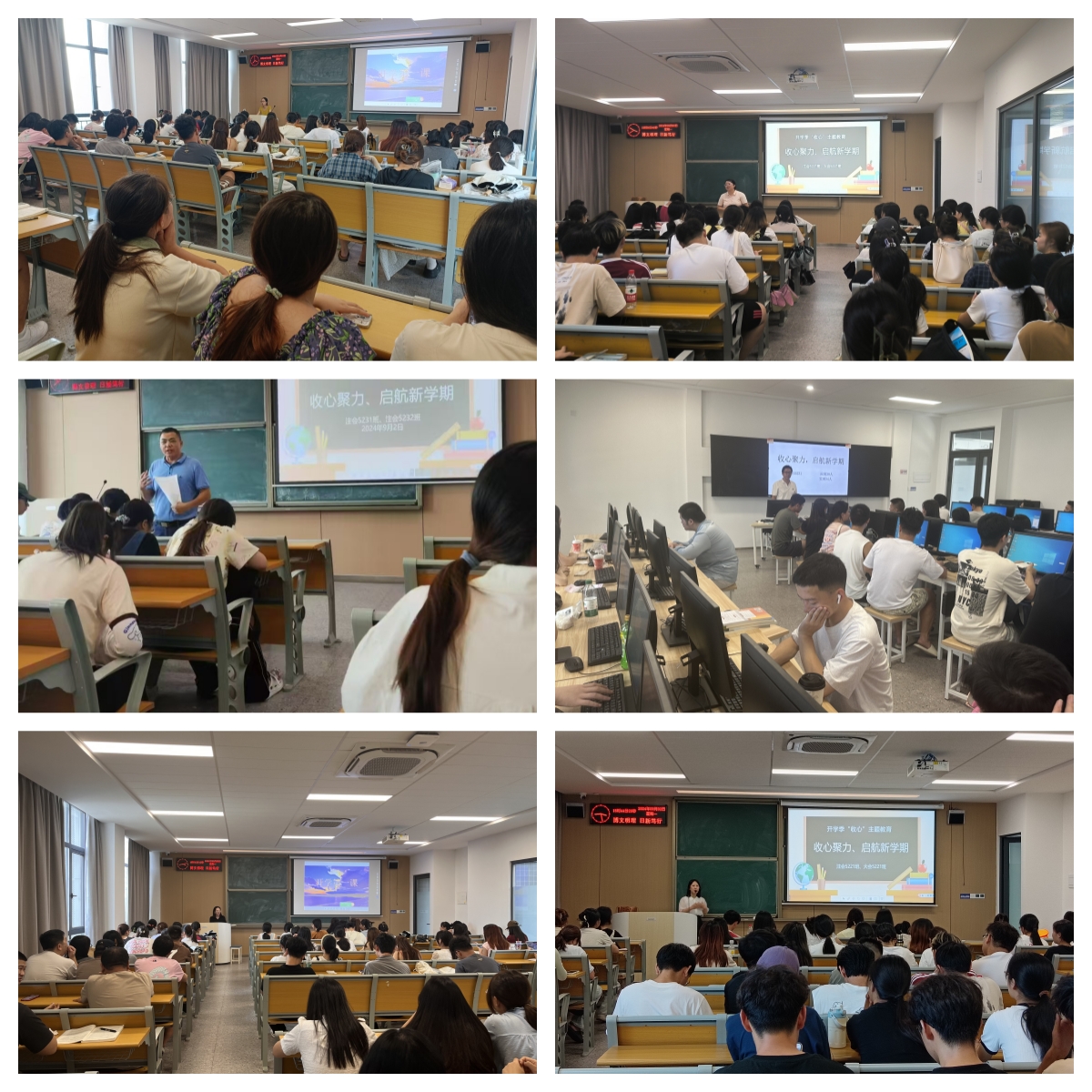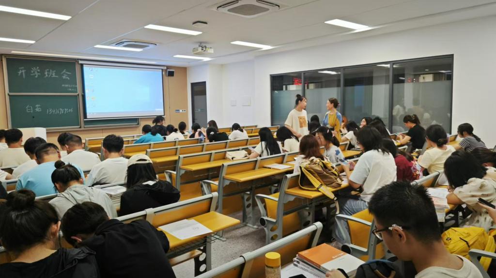 本网讯(通讯员 成观雄)为引导同学们迅速回归大学校园生活,明确学习目标,增强安全意识,9月1日晚上7点,全院班主任、辅导员于开学之际面向各班员工召开“开学第一课——收心班会”主题班会,同时员工工作部工作人员到现场检查工作。此次班会各班班主任、辅导员主要围绕校园安全教育、新学期学业规划、心理调适等方面展开。