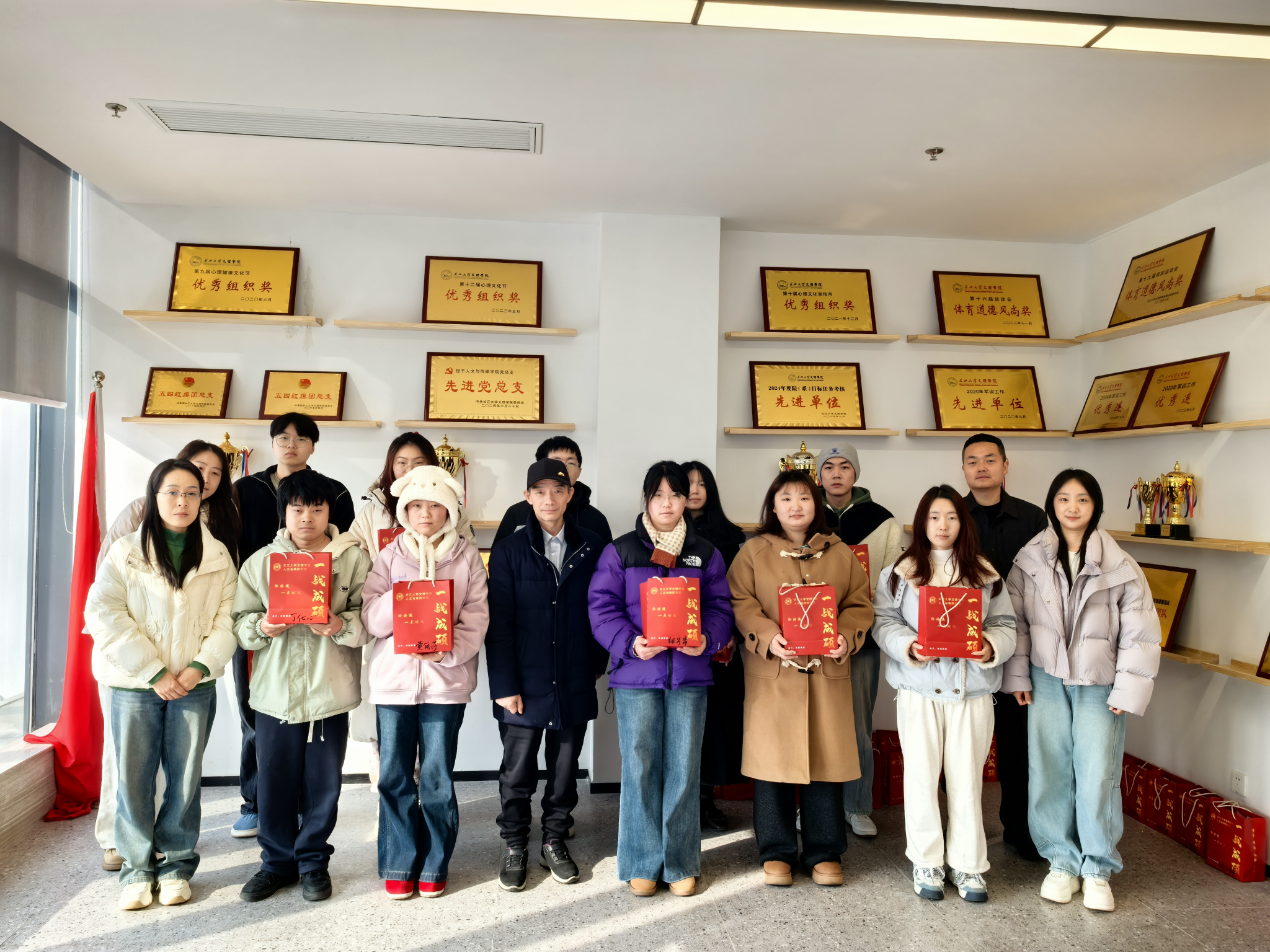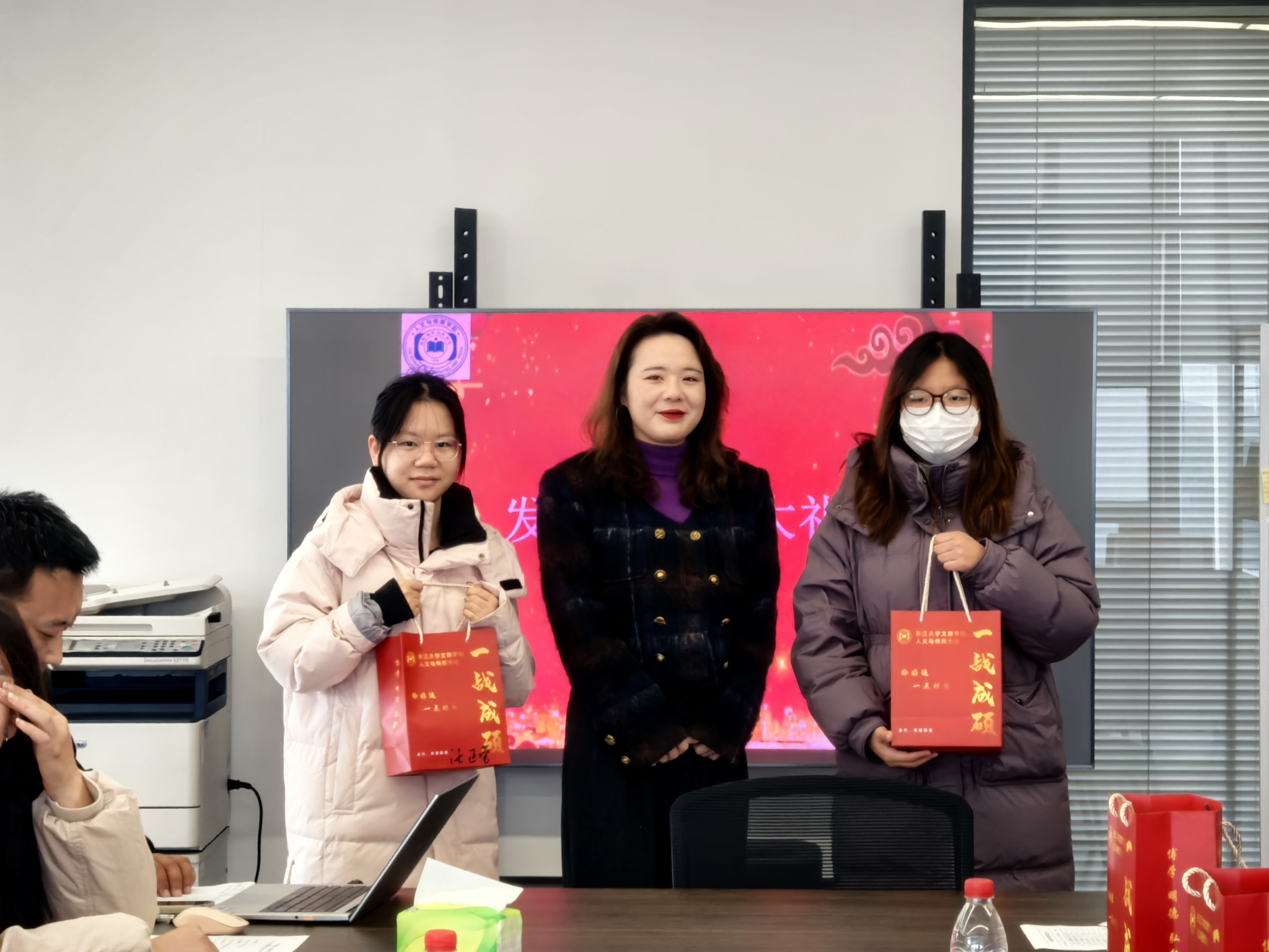 现场温馨洋溢,学院领导、老师为考研员工代表送上了精心策划、满载心意的“考研加油包”。每一份礼包都凝聚着学院的细致关怀:既有承载师长殷殷叮嘱的手写祝福信,为学子注入精神动力;也备齐了考试必备文具,提供坚实的物质支持。几片暖宝宝,恰似无声的陪伴,驱散严寒;一份份能量零食,寓意着续航与补给。而特别准备的“柿柿如意”挂件,更以谐音巧思,寄托着对学子前程似锦、心想事成的美好祝愿。每一件物品的挑选与组合,无不体现着学院在细节之处的温暖与用心。