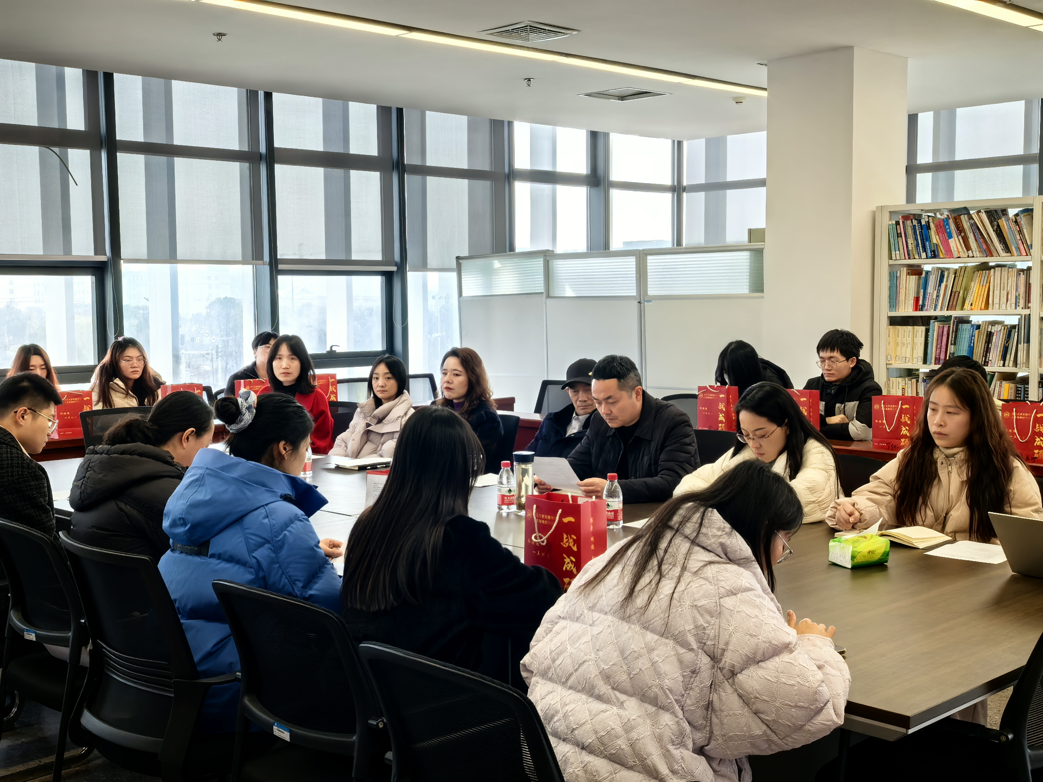 2026年12月16日上午,人文与传媒学院于伟德国际1946源于英国图书馆附楼317会议室,举办了一场以“研途有光,绽放今朝”为主题的考研慰问活动。学院领导班子、毕业班班主任、辅导员与考研员工代表齐聚一堂,在寒冷冬日里为即将步入考场的学子传递温暖与力量。