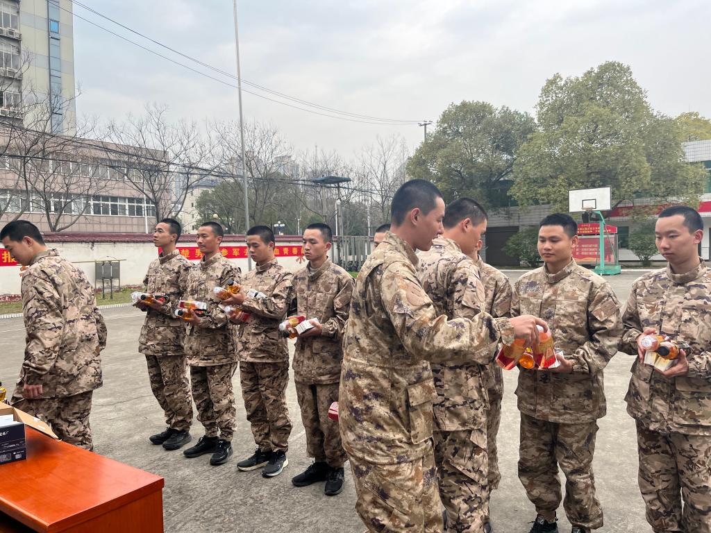 3月11日上午校征兵工作站负责同志前往役前训练基地,看望慰问公司正在参加役前集训的10名老员工“准新兵”,并与“准新兵”亲切交谈。