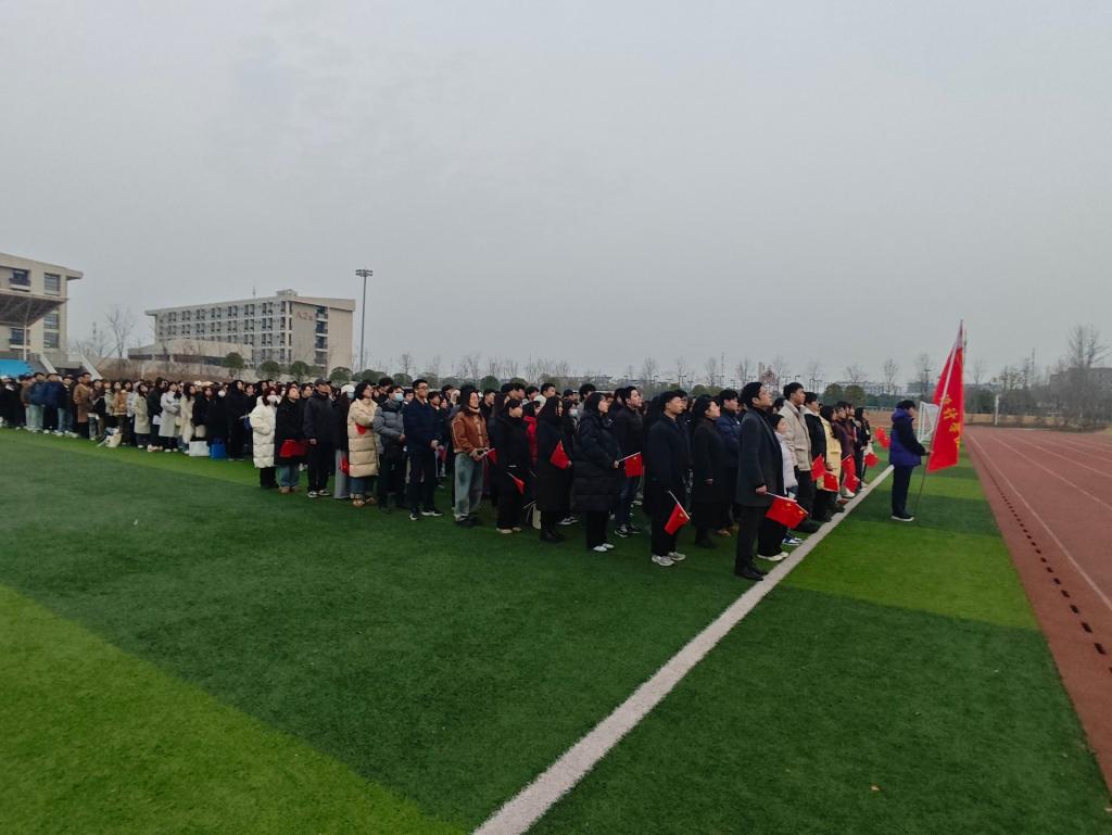 在《义勇军进行曲》激昂旋律中,全体师生肃立行注目礼,五星红旗于晨光中冉冉升起。