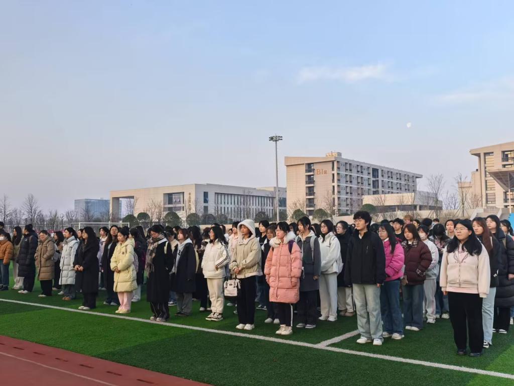 3月17日早七点,“筑梦绘经纬,青春砺征程”主题升旗仪式于操场举行,外国语学院全体师生参加。