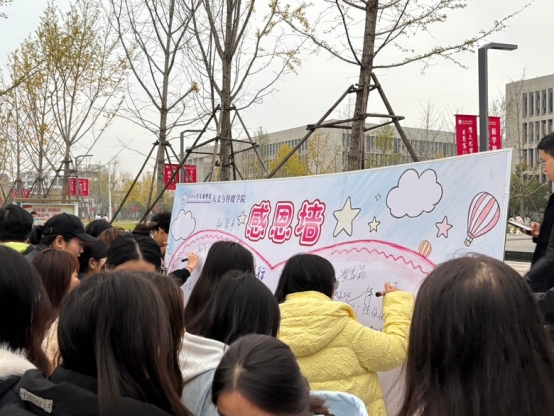 仪式最后,全体师生有序在感恩墙上签名留念。本次升旗仪式不仅是一场生动的爱国主义教育实践,更通过感恩主题深化了师生之间的情感纽带,增强了学院的凝聚力和向心力,为人文与传媒学院的学风建设与文化传承注入了新的精神动力。