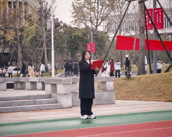 升旗仪式结束后,学院优秀班主任代表杨玉丽老师以《以感恩之舟,渡青春之河》为题发言,深入阐释了奋斗与感恩的内在联系,勉励全体师生常怀感恩之心、勇担时代责任,共同为学院发展贡献力量。随后,员工代表中文5221班陈政烨以《心怀感恩,向阳生长》为题,结合个人成长经历,表达了对学校培养和师长教诲的感激之情,并表示将珍惜荣誉、砥砺前行,以实际行动践行“以感恩铸就青春底色”的深刻内涵。