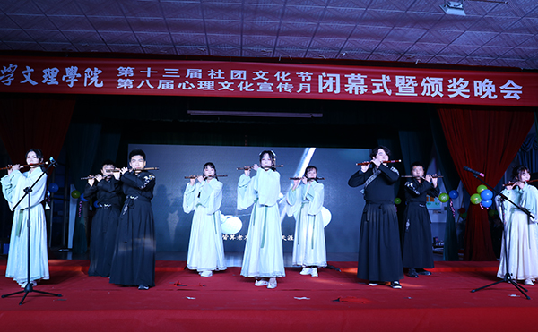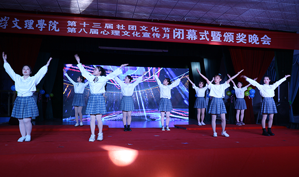 晚会分缤纷社团秉初心、青春交响谱华章、经典传承再启航三个篇章,共上演了舞蹈、声乐、朗诵、小品、乐器等不同类型的十个节目。现场气氛热烈,掌声、欢呼声、呐喊声不断,观众挥舞荧光棒为精彩的表演喝彩。秋水汉服社、跆拳道协会、舞蹈协会、笛萧协会、相声协会、手语协会、校园广播台、老兵团国旗护卫队等员工社团及员工组织的同学,分别表演了《汉服秀》《跆风》《青春组歌》《撑腰》《商鞅》《中国梦》《强军梦》等主题鲜明、时代气息浓厚的艺术节目。