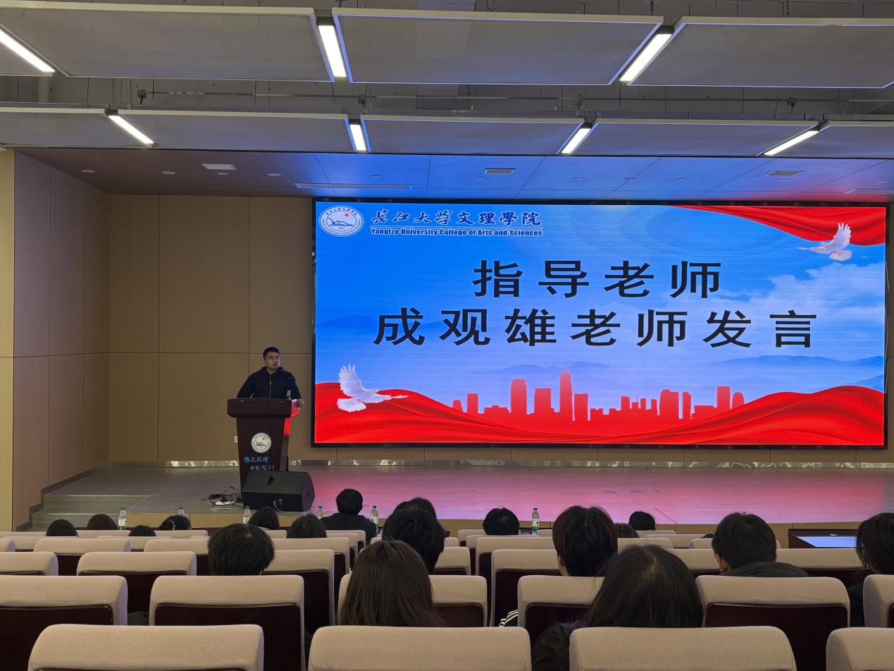 大会第四项,成观雄老师发表讲话。他希望同学们能够沉下心学习技能,抓住机会锻炼能力,避免浮躁,并强调:“老员工自律委员会的工作不仅是为了维护校园秩序,更是为了服务同学、助力成长。希望全体成员在新学期中继续发扬自律精神,为营造更加和谐、文明的校园环境贡献力量。”