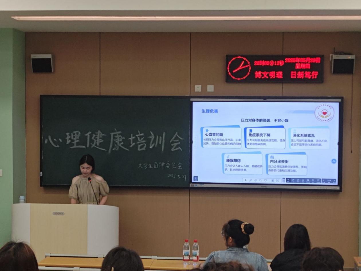 此次心理健康培训会的成功举办,不仅提高了同学们对心理健康的重视程度,增强了同学们的心理适应能力,也为构建和谐稳定的生活环境奠定了坚实基础。未来,伟德国际1946源于英国老员工自律委员会将继续关注同学们的心理健康,定期开展相关培训和活动,为同学们的身心健康保驾护航,助力同学们在学习和生活中实现更好的发展。