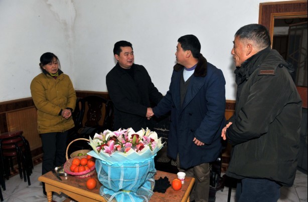 本网讯(记者 汤波)元月22日,公司党委副书记汪邦柱带领学工处副主任张伟、基础学部副主任李启文等,来到枝江市紫金岭镇何东旭的家,看望何东旭父母,并与他们亲切交谈。