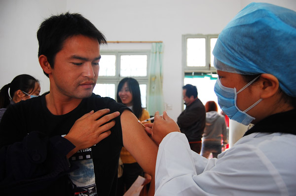 随后,医生拿出一支甲流疫苗,在王老师左手上臂外侧三角肌处进行注射,很快便结束,整个注射过程他都十分平静。“怎么样?”旁边有老师问道。“不疼,一点感觉都没有。”王新波老师边穿衣服边微笑着说,与注射普通疫苗没有区别。据现场医生介绍,学院将按照知情同意,免费自愿的原则对重点人群分批进行疫苗接种。受种者要认真阅读知情同意书,确认无同意书上所述的任何禁忌症或不适症状,了解接种程序以及注射疫苗后可能出现的不良反应,接种后要留观30分钟。校医院工作人员告诉记者,甲流疫苗并不是预防甲流的惟一方法,最重要的还是要形成良好的卫生习惯,常通风,尽量减少在人群密集处逗留的时间。