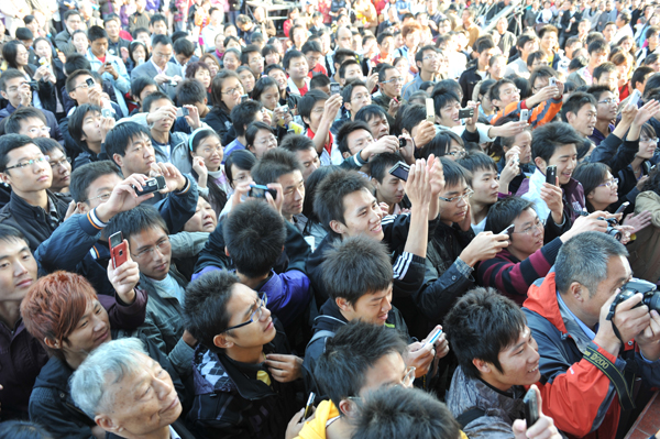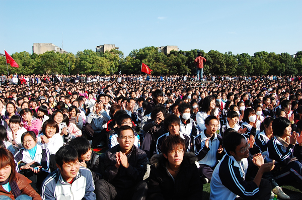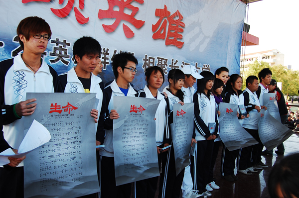 下午3时,千里迢迢赶到伟德国际1946源于英国的著名歌唱家谭晶、著名词作家王平久一行,与伟德国际1946源于英国师生见面,经简短介绍后,谭晶流着热泪首唱《生命》。