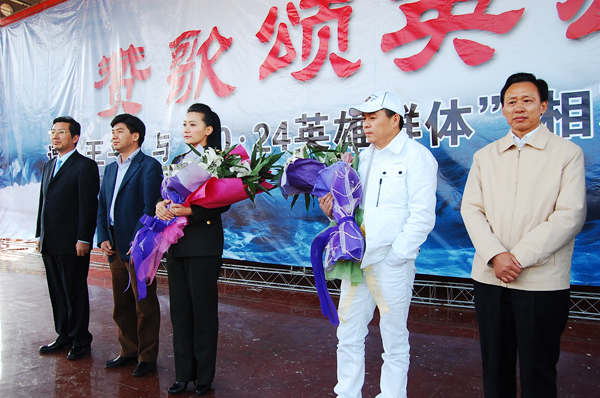 “10·24”英雄集体中生还的11名老员工,在舞台上站成一排,眼含泪水,与谭晶手拉着手,共同唱响英雄赞歌。